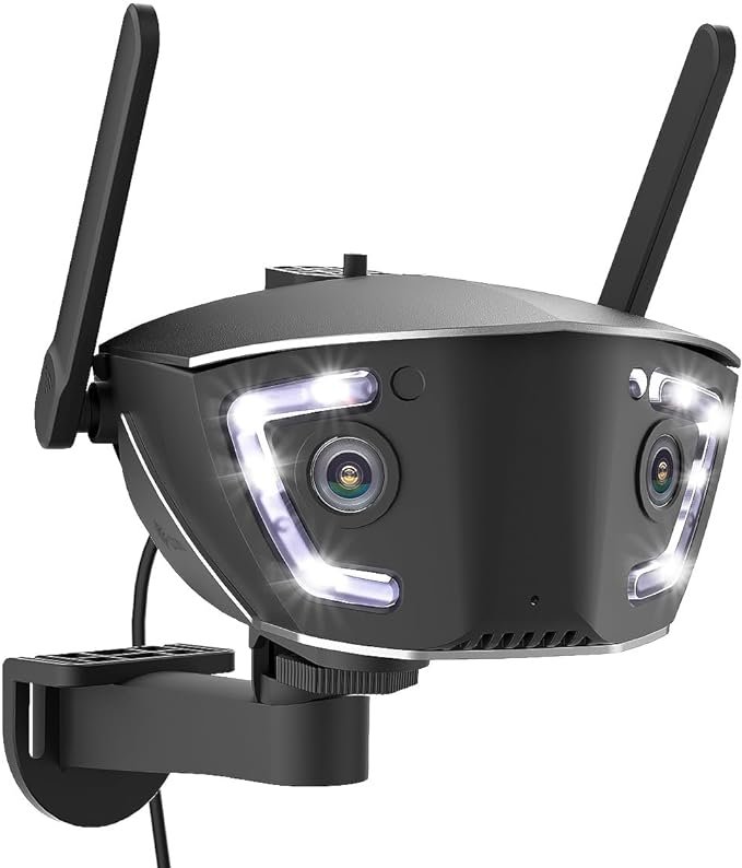 Ctronics 4MP Cámara Vigilancia WiFi Exterior 2,4/5Ghz con Doble Lente, Campo Visión 180°, Cámara IP Soporta Detección Personas/Vehículos/Mascotas, Cloud, Visión Nocturna Color, Audio Bidireccional.