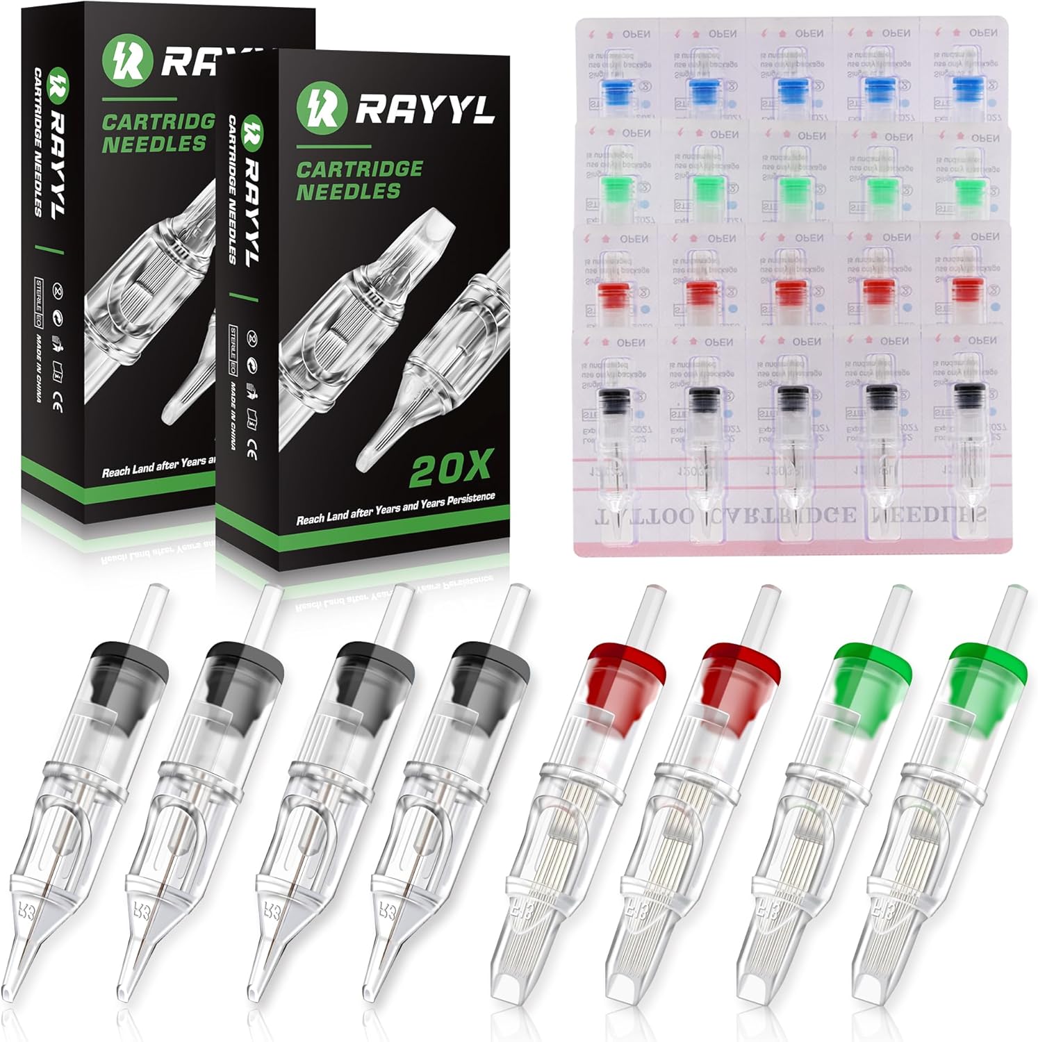 怐Paquete y tamaƱo怑Incluye 40 agujas de tatuaje en paquetes individuales, con 1203RL, 1205RL, 1207RM y 1209M1 (10 u/cada una).