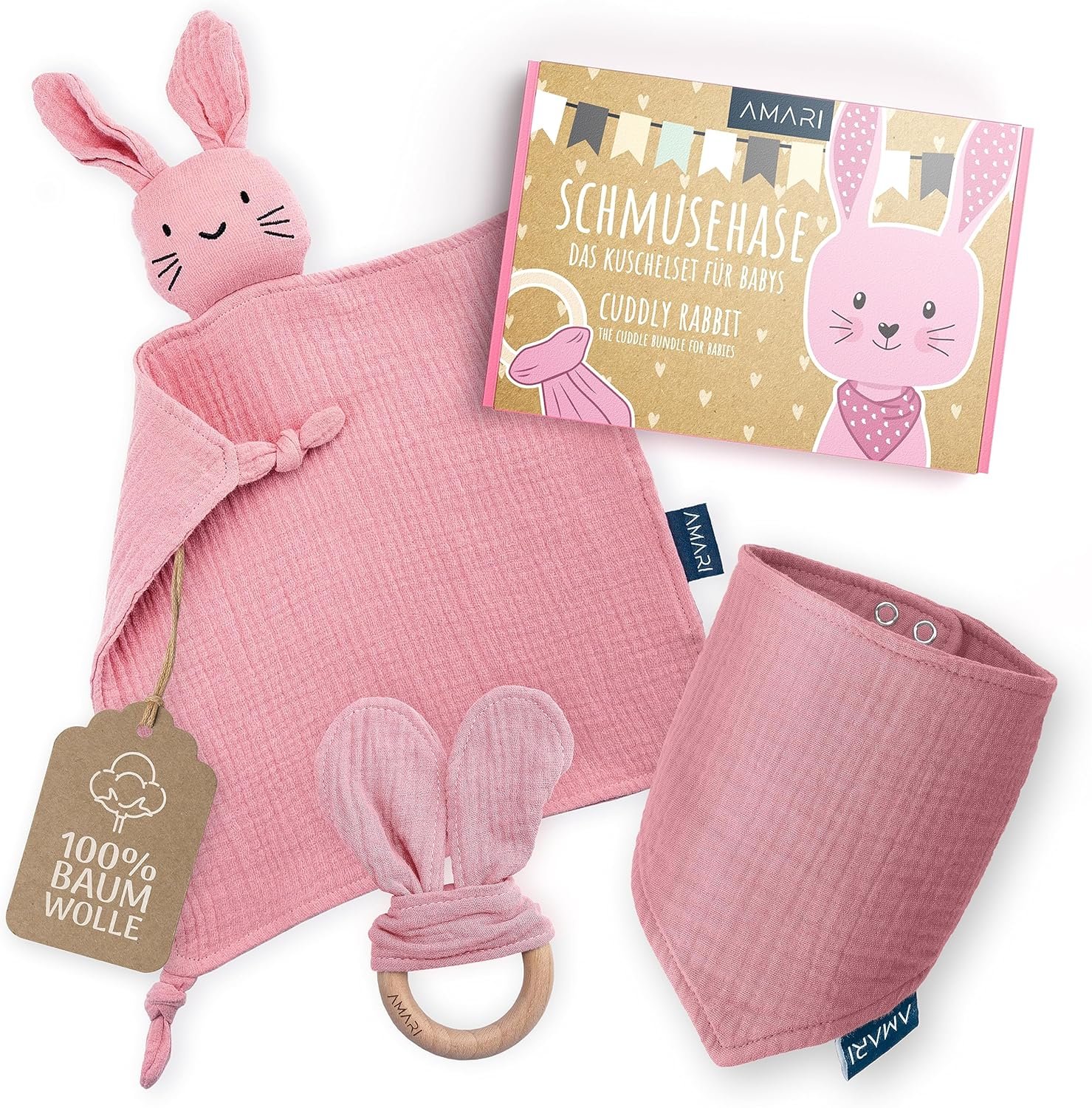 Paño de mimos con mordedor y babero para bebe